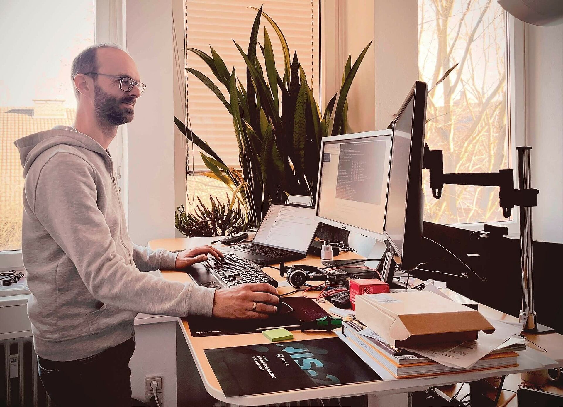 Auch Arash arbeitet häufig von zu Hause aus, ist aber auch ein Magnet für alle Kolleginnen und Kollegen am Mittwoch doch mal im Büro vorbeizuschauen, wenn er den gemeinsamen Mittkoch ausrichtet. Denn Arash kann richtig gut kochen!