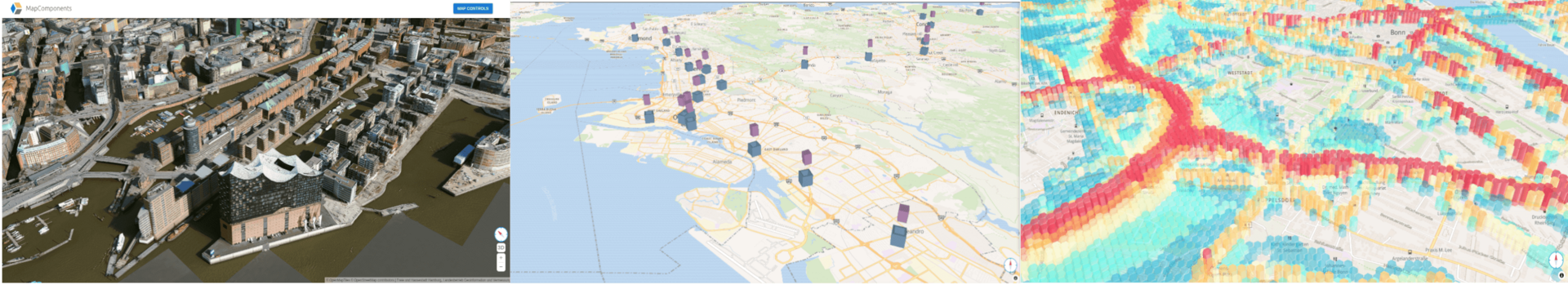 Diese Zukunft, über die so lange spekuliert wurde, ist endlich da. Um den neuen Anforderungen moderner Kartenanwendungen gerecht zu werden, haben wir unsere deklarative React-Bibliothek MapComponents erweitert und neben unserem auf MapLibre basierenden Basispaket zwei neue Pakete veröffentlicht: @mapcomponents/deck-gl und @mapcomponents/three. Diese Pakete erweitern das Komponentenangebot von MapComponents, ermöglichen die Einbindung neuer Datenquellen und bieten komplexere Visualisierungen. Dabei bleibt der Grundgedanke der Bibliothek erhalten: leistungsfähige und vielseitige Kartenanwendungen aus einfachen, flexiblen und nutzerorientierten Komponenten zu entwickeln.