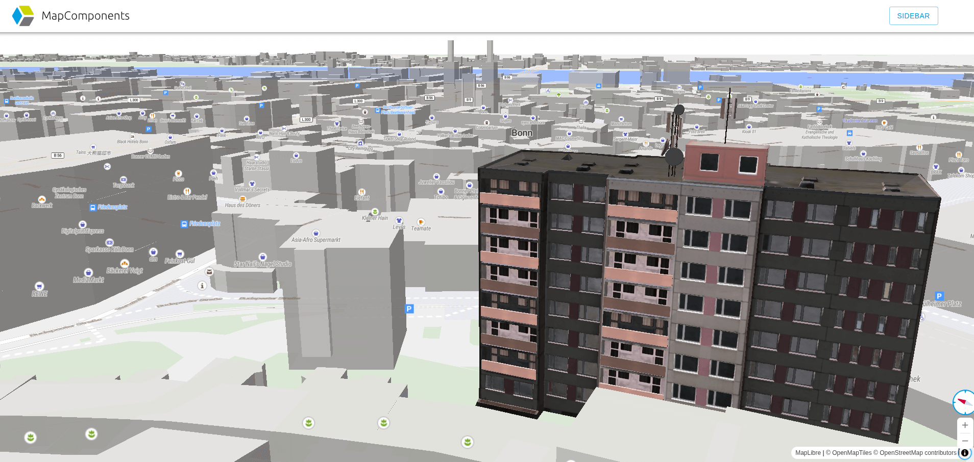 Während deck.gl bereits leistungsstarke Optionen zum Rendern von 3D-Objekten auf der Karte bietet, erweitert das neue Paket @mapcomponents/three basierend auf Three.js die Möglichkeiten deutlich. Es öffnet die Tür zu reichhaltigeren Animationen, realistischeren Szenen und fortgeschrittenen 3D-Interaktionen.