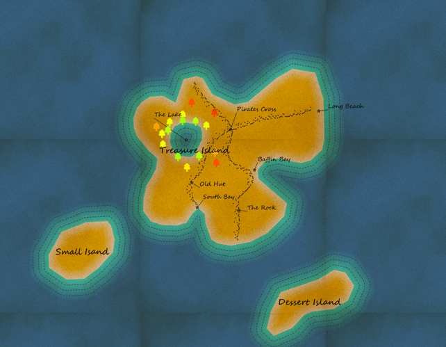 Diese Treasure-Island-Map verwendet einige interessante Visualisierungstechniken von QGIS, um die dargestellten Effekte zu erzielen; unter anderem den Geometry-Generator, Shapeburst-Füllung, datendefinierte Übersteuerungen, Rasterfüllungen und Blending-Modes. Das folgende Video zeigt uns die Entstehung der Schatzinsel. Das zugehörige QGIS-Projekt könnt Ihr hier downloaden.