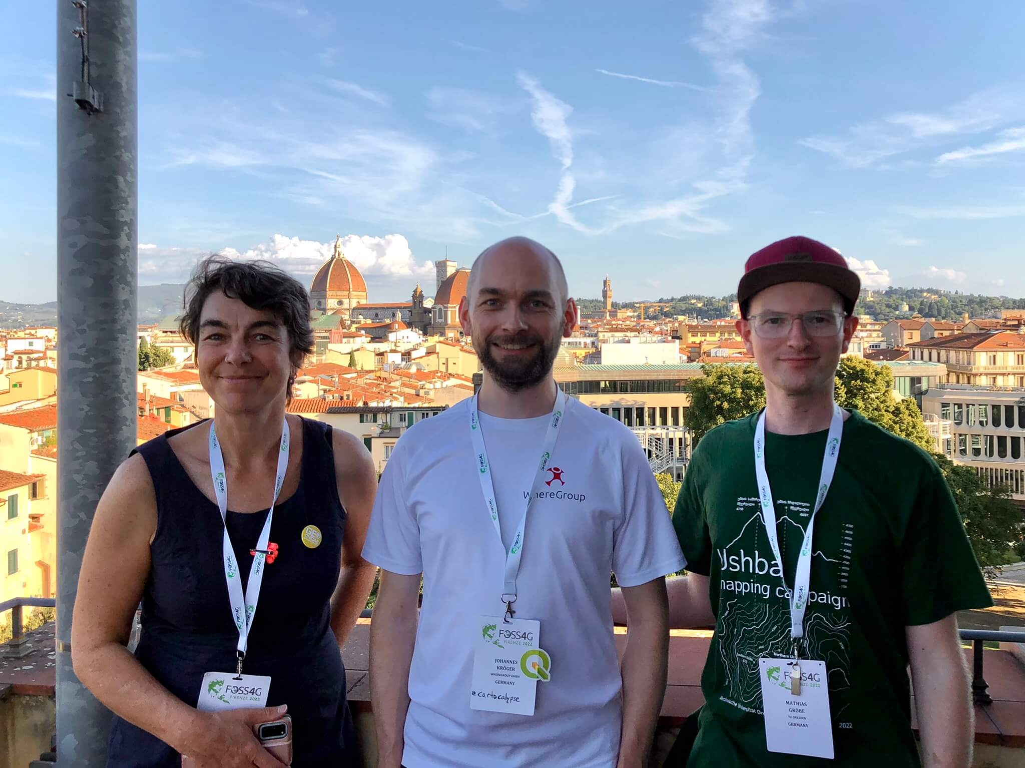 Einmal im Jahr trifft sich die globale Open-Source-Geospatial-Community zur FOSS4G Konferenz. In diesem Jahr fand die Konferenz erstmals seit der Pandemie wieder vor Ort statt - über 1000 Teilnehmende reisten dafür nach Florenz (Italien). Eine Onlineteilnahme war ebenfalls möglich und wurde von knapp 300 Personen genutzt.