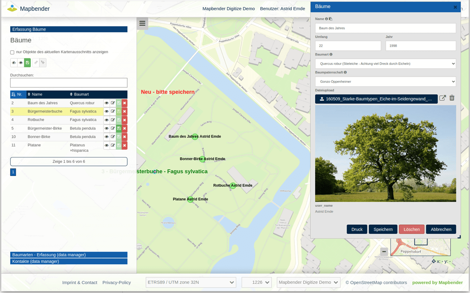 Sie benötigen eine einfache und flexible Möglichkeit, Daten übers Web zu erfassen? Dann könnten der Mapbender Digitizer und DataManager genau das Richtige für Sie sein.