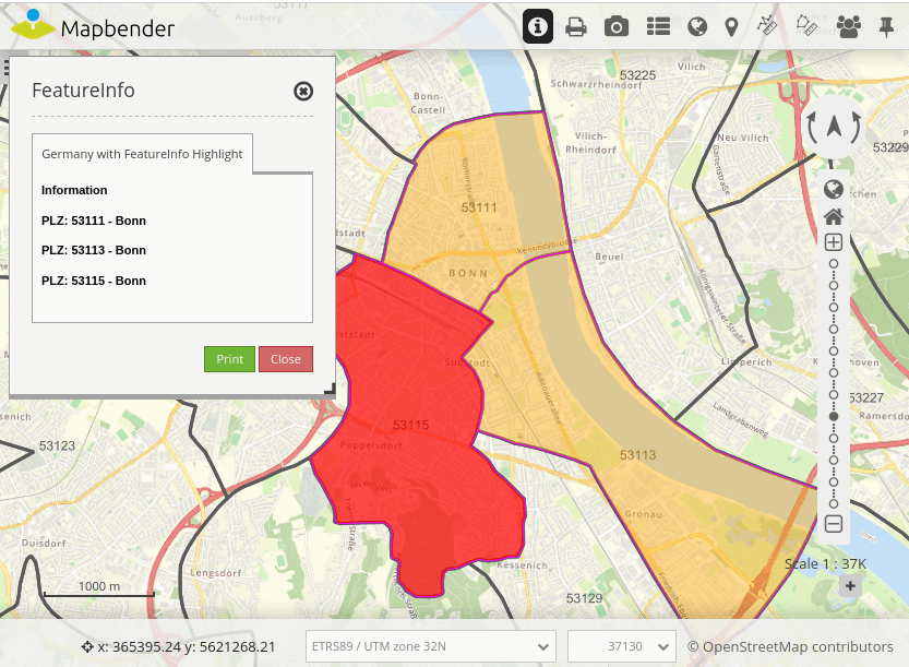 Mapbender FeatureInfo mit Highlighting der Treffer-Geometrie