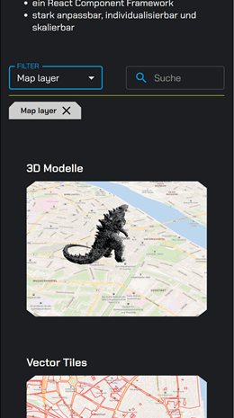 MapComponents ist durch den Einsatz von modernen Frameworks und Bibliotheken (Node.js, React, MapLibre), besonders zukunftsorientiert. Kerngedanke der Software ist die Bereitstellung einzelner (React-)Komponenten, die beliebig zu einer modernen, auch grafisch ansprechenden und für Mobilgeräte optimierten WebGIS-Anwendung zusammengesetzt werden können. Da sich in den letzten Jahren und Jahrzehnten ein Trend zu immer mehr Mobilgerätnutzung entwickelt hat, ist die Responsivität ein besonders wichtiges Feature.