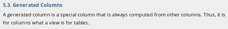 Eine weitere verschmerzbare Einschränkung ist, dass sich Generated Columns nur auf persistente Spalten beziehen können, also nicht auf andere Generated Colunms. Dafür ist es möglich einen Index auf ihnen zu generieren: